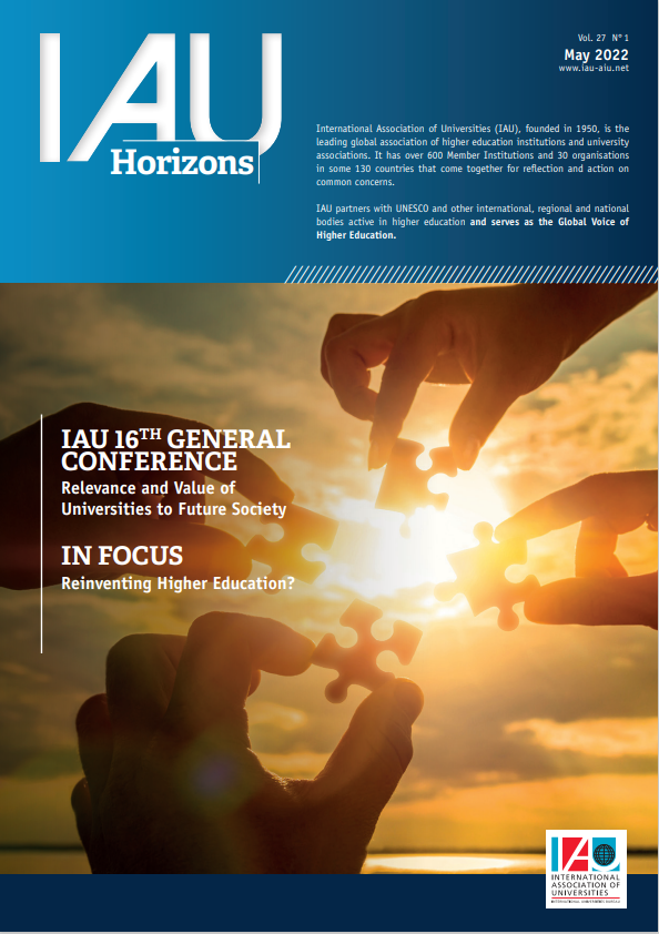 IAU Horizons журналының “Relevance and Value of Universities to Future Society” тақырыбындағы 16-шығарылымында Президент Шигео Катсу, Провост Илесанми Адесида, Вице-провост Лоретта О'Доннелл және Жаһандық байланыстар кеңсесінің басшысы Әлия Каймолдинова жоғары білімді қайта қарастыру және Ковид-19 пандемиясының бізге үйрететіні туралы айтты.