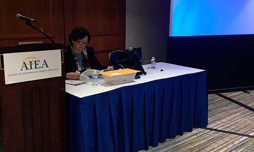2018 жылы Халықаралық ынтымақтастық департаментінің Директоры Әлия Бақытқанқызы Қаймолдинова мен Тәжірибе трансляция офисінің үйлестірушы Мадина Несипказиевна Айтаканова AIEA Conference конференциясына қатысып, сессиялардың бірінде «Alliances under the Belt and Road Initiative: University Partnerships between China and Kazakhstan» атты көрсетілім жасады.