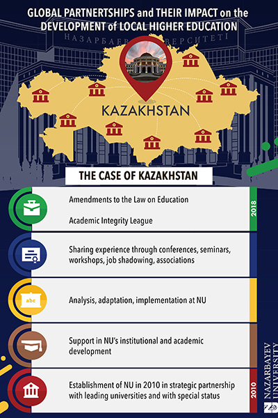 2019 жылы өткен Going Global конференциясында Назарбаев Университетінің атынан Студенттік мәселелер және халықаралық ынтымақтастық жөніндегі Вице-президент Кадиша Нурдулдиновна Даирова және Халықаралық ынтымақтастық департаментінің Директордың міндетін атқарушы Мадина Несипказиевна Айтаканова “Global Partnerships and Their Impact on the Development of Local Higher Education” тақырыпта көрсетілім жасады.