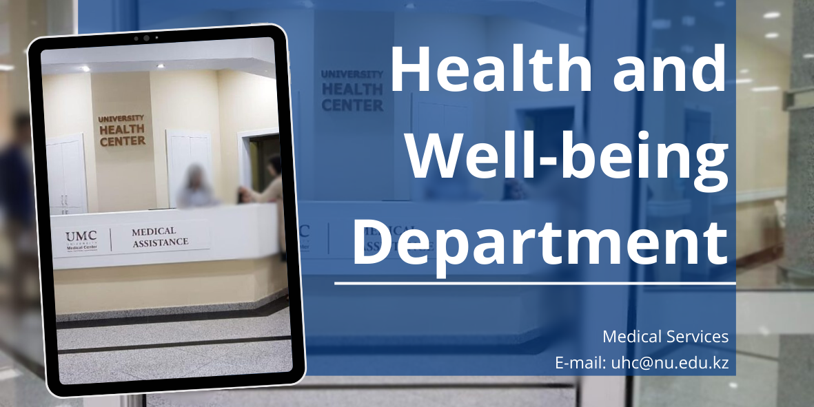 Кампустағы медициналық қызметтер Назарбаев Университетінің Денсаулық сақтау және әл-ауқат департаменті (HWD) тарапынан ұйымдастырылады. Біздің департамент университет қауымдастығы үшін дені сау және қолайлы ортаны қалыптастыруға ұмтылады.