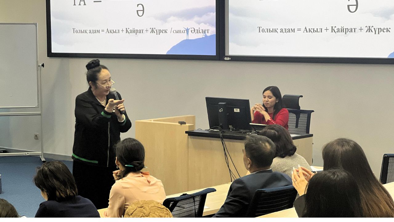 NU (NU) held a seminar training on "Abay's teachings: "Tolyk Adam" and Justice". The speaker - Professor, and Director of the NU Cultural Center, Gultas Kurmanbay, revealed the concept of "Tolyk Adam" (Perfect Man) and the deep roots of Abay's philosophy, the principles of which are relevant to modern Kazakhstan.