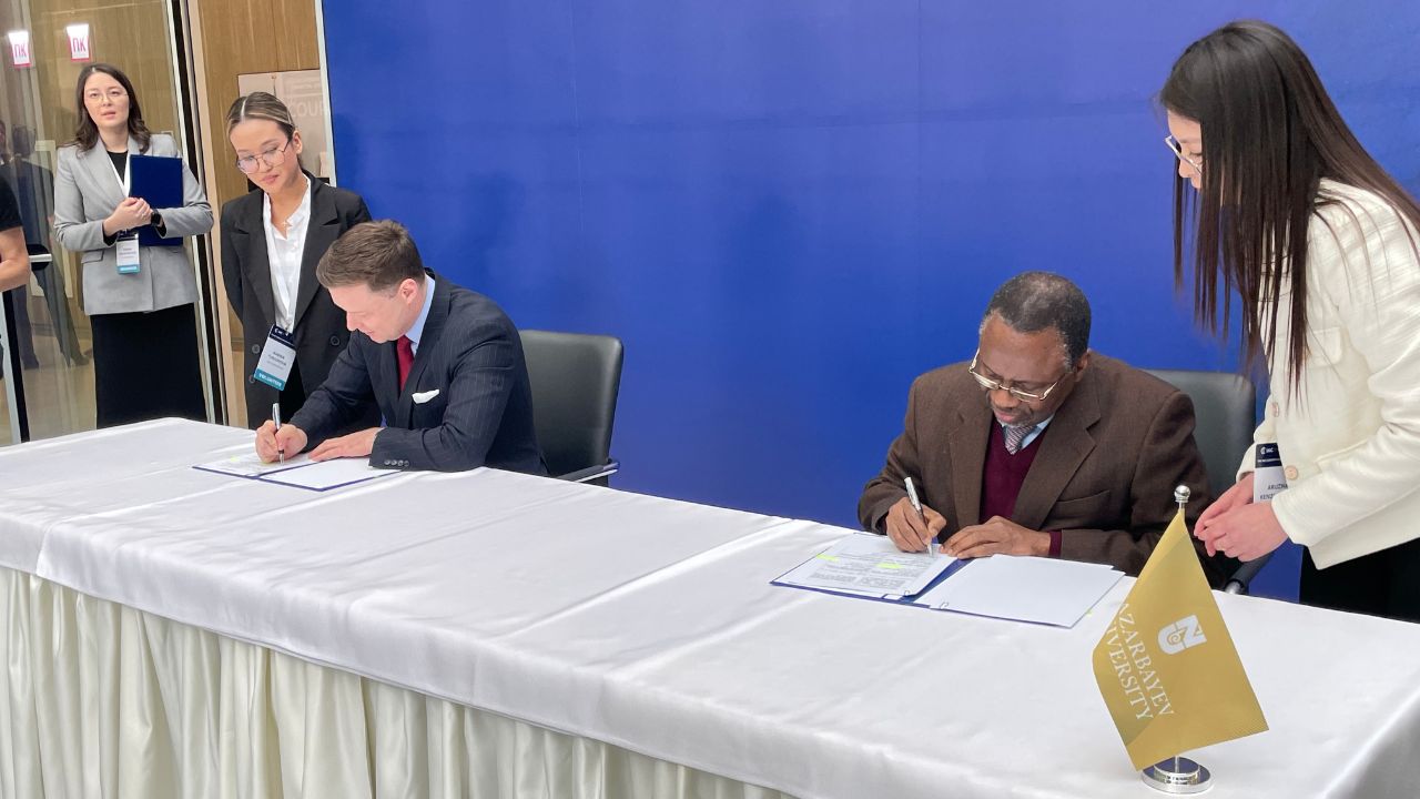 As part of the memorandum, the parties will organize professional development and advanced training programs, conferences, round tables, and symposiums, where representatives of NU and AIFC will share professional expertise and act as trainers.