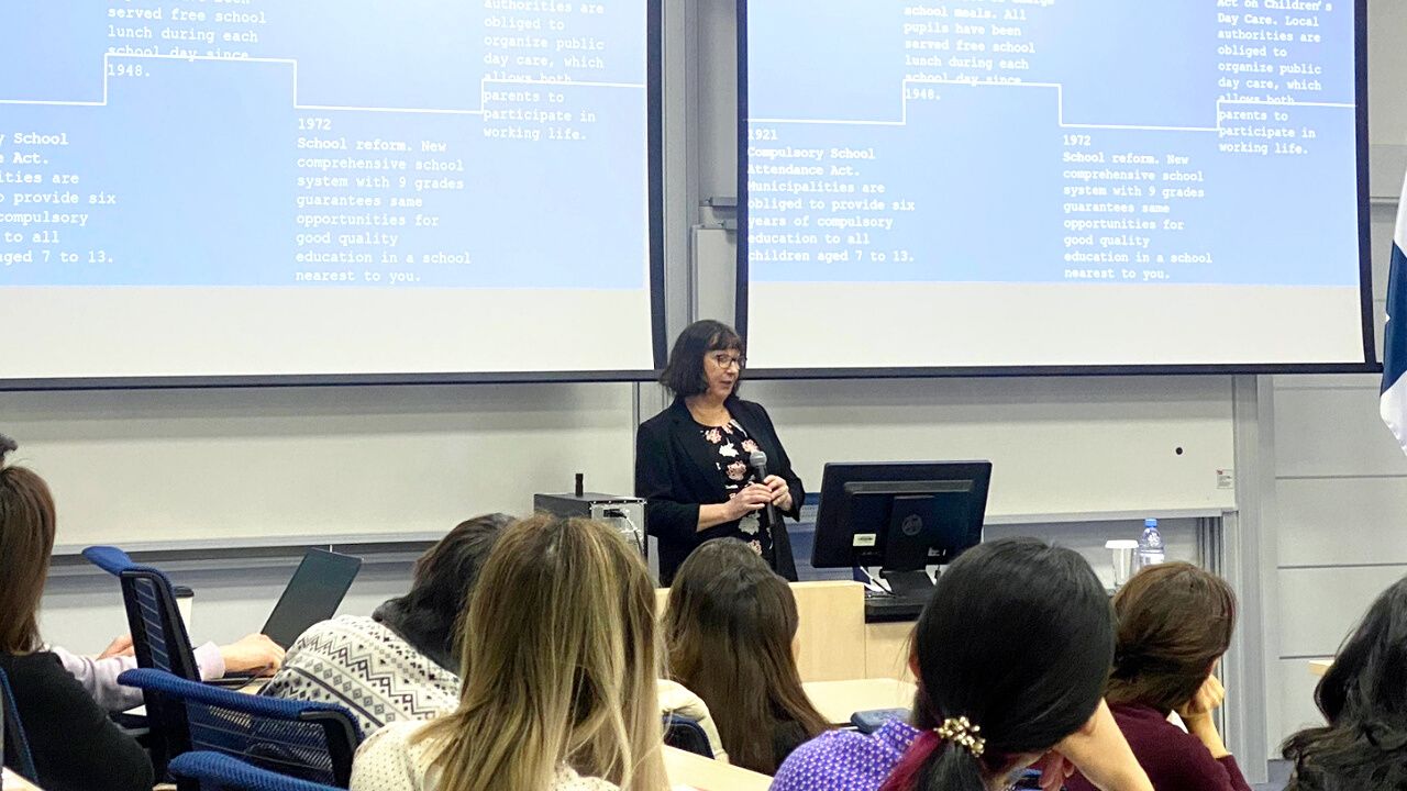 Share this articleThe Ambassador of the Republic of Finland to Kazakhstan and Kyrgyzstan, Ms Soili Mäkeläinen-Buhanist, delivered a guest lecture.