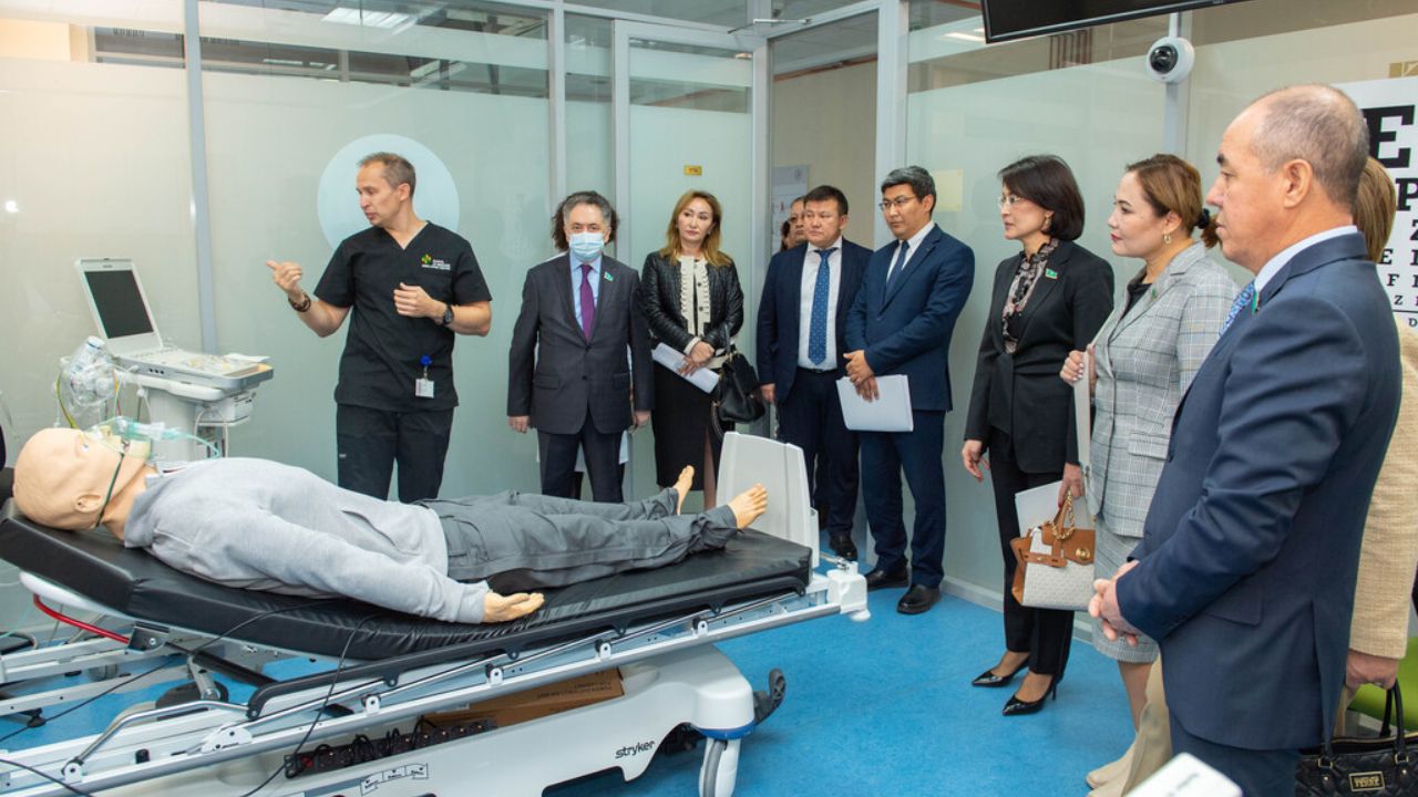 Today, deputies of the Committee for Social and Cultural Development and Science of the Senate of the Parliament of the Republic of Kazakhstan, headed by Committee Chairman Nariman Turegaliyev and Vice Minister of Health of the Republic of Kazakhstan Zhandos Burkitbaev, visited the School of Medicine of AEO "NU" and the University Medical Center - Corporate Fund "University Medical Center."