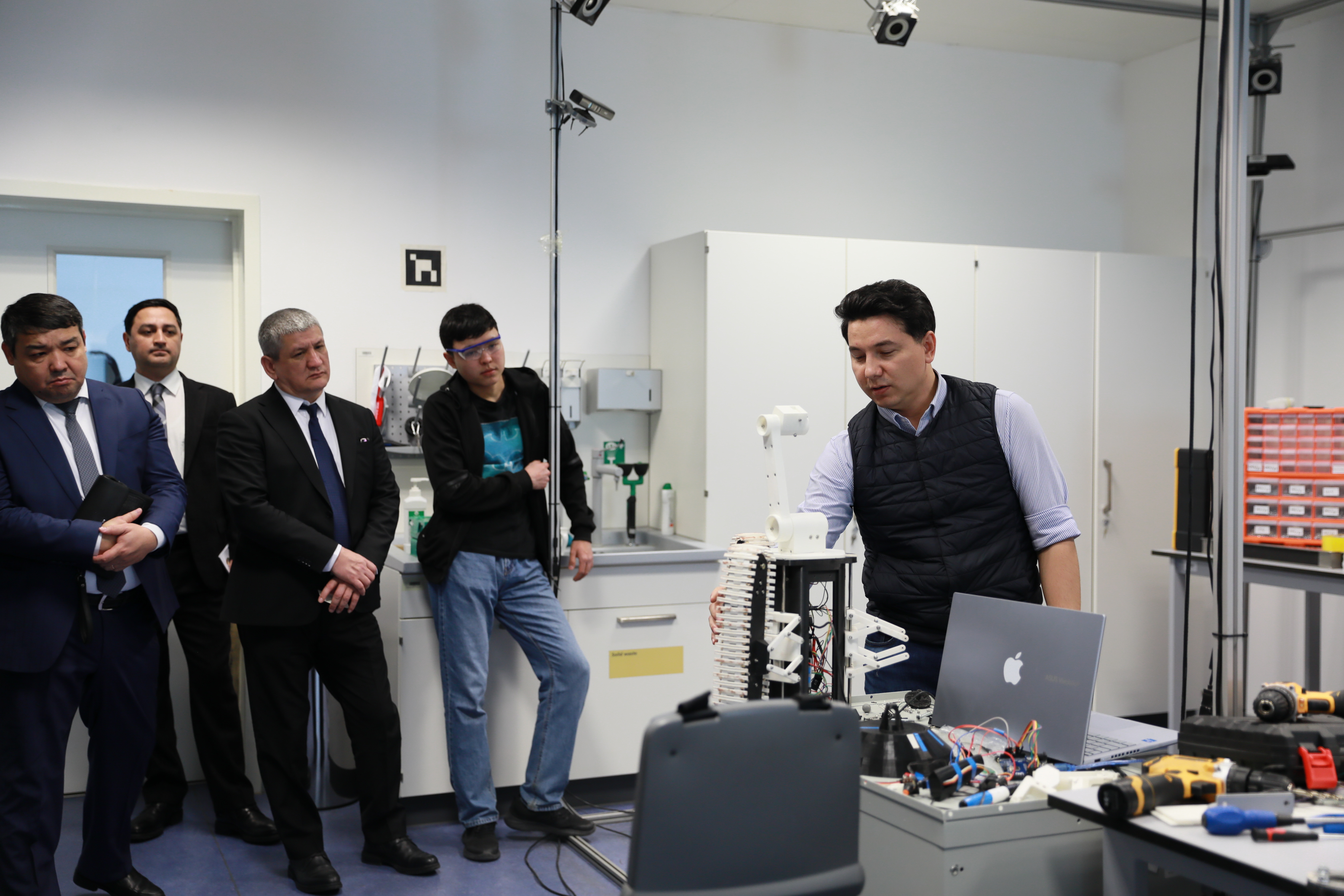 Қонақтар Орталық Азия мен Кавказдағы ең үздік университет болып табылатын университеттің мүмкіндіктерімен танысты. Оларға робототехника және электронды микроскопия бойынша ғылыми зертханалар көрсетіліп, NU ғалымдары мен студенттерінің жасап жатқан жобалары туралы айтылды.Атап айтқанда, постдокторант Азамат Ешмұхамбетов өнеркәсіп пен өндірісте қолдануға болатын тенсегрити роботтар туралы айтты. Ол сондай-ақ TENG сенсорлық платформасы негізінде жасалған «ақылды ұлтарақ» стартап жобасы туралы айтты. Оны ерте диагностикалау және аутизммен және қозғалыс бұзылыстарымен ауыратын спортшылар мен балаларды сауықтыру үшін пайдалануға болады.
