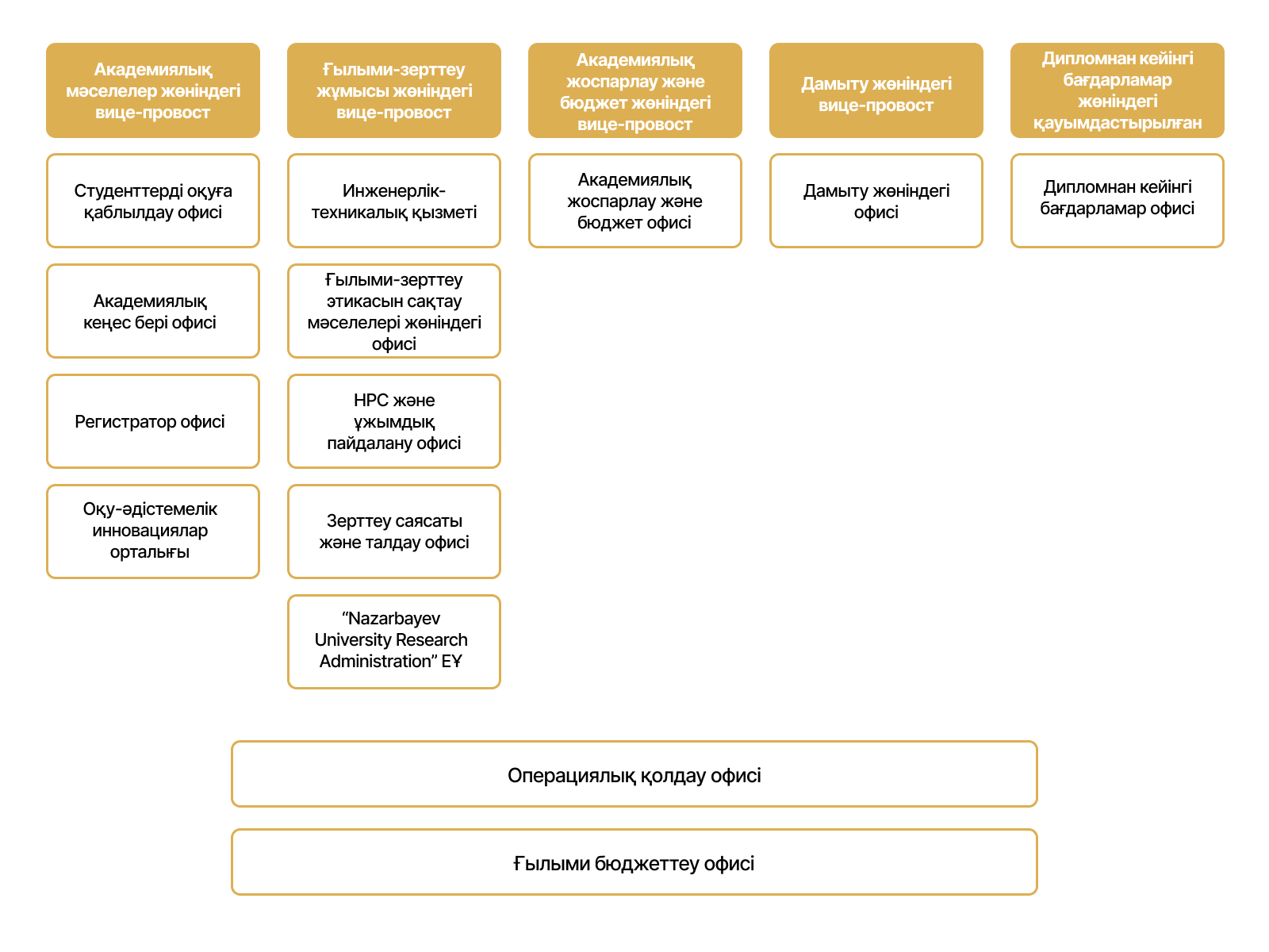 Провост офисі оқу және оқытуды жетілдіру бағытындағы академиялық саясатты және бастамаларды дамыту, орындау мәселелеріне институционалдық қолдау көрседеті.