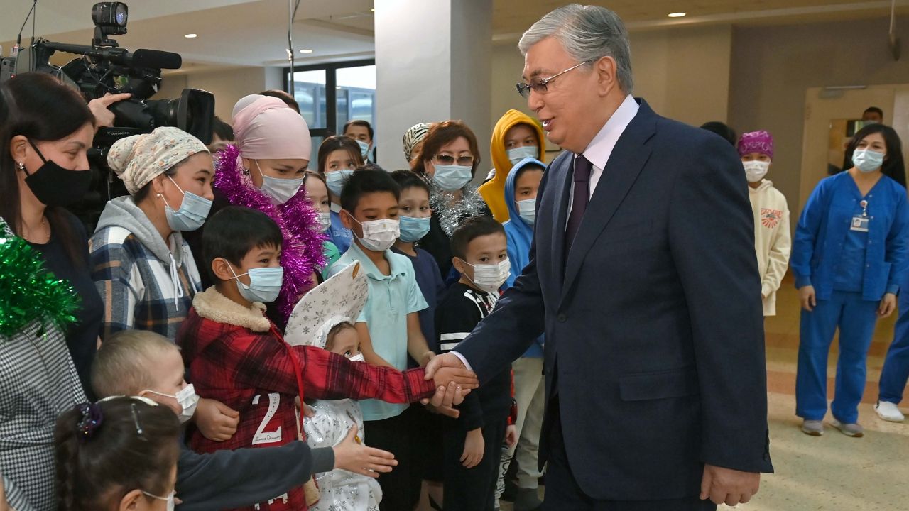 Президент Токаев пожелал маленьким пациентам скорейшего выздоровления, поздравил их с Новым годом и вручил подарки. Он также подарил больнице новый реанимобиль.